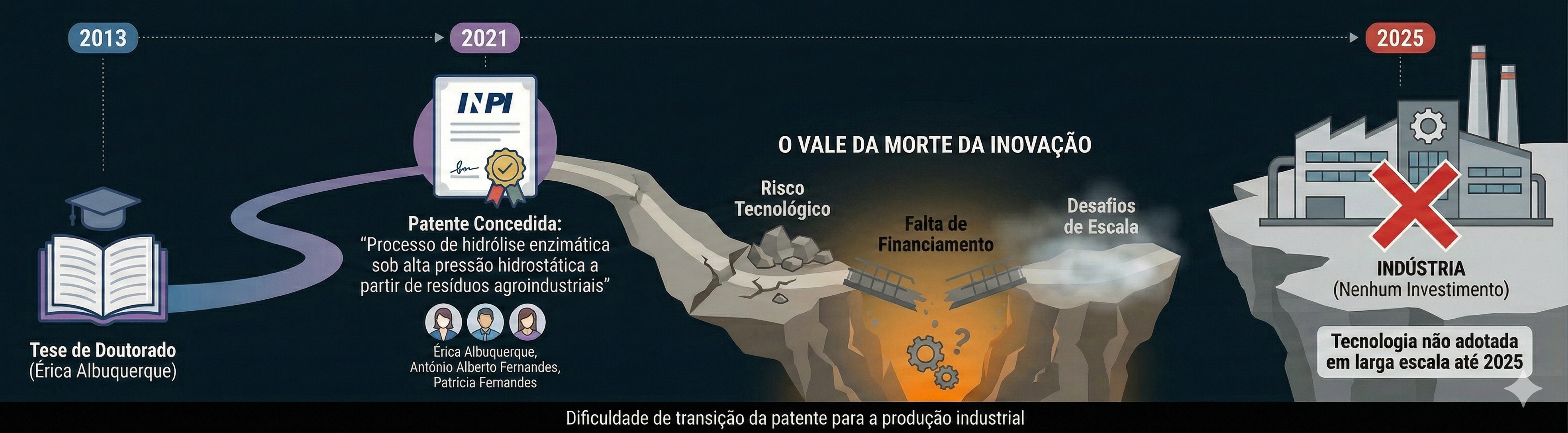 Em 2021, o Instituto Nacional de Propriedade Industrial (INPI) cedeu a patente “Processo de hidrólise enzimática sob alta pressão hidrostática a partir de resíduos agroindustriais” para Érica Albuquerque, Antônio Alberto Fernandes e Patrícia Fernandes. Mas, apesar da pesquisa ter sido bem sucedida, abastecer os automóveis com etanol de coco ainda não chegou aos postos por desinteresse da indústria, pois os processos de produção são idênticos ao etanol de cana-de-açúcar.